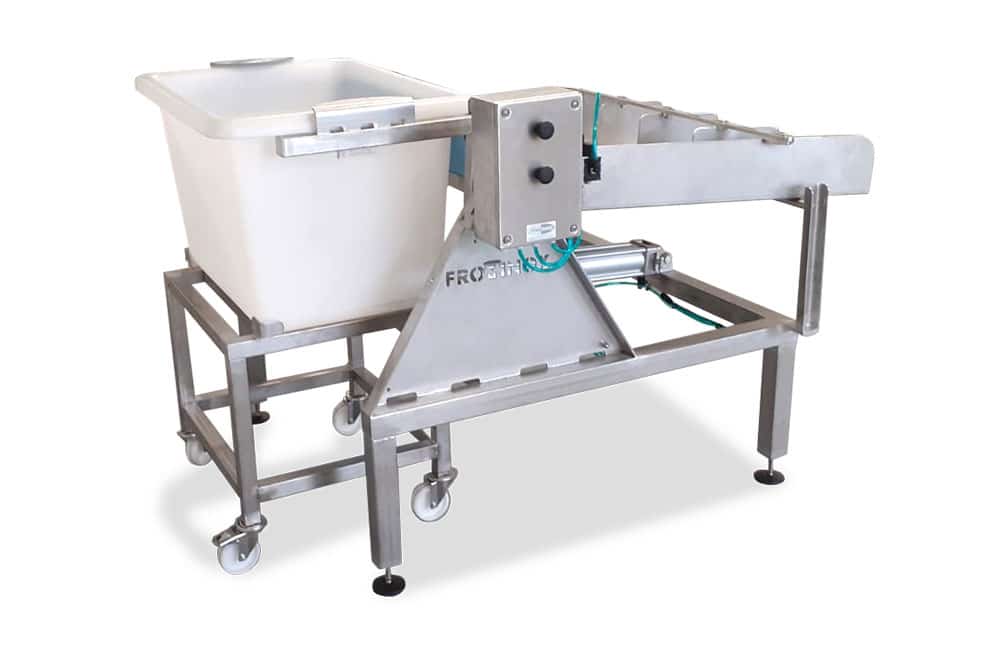 Ce basculeur de bassines est destiné au moulage de fromage de type pâte molle, qui est fabriqué en bassine plastique d’un volume maximum de 210 L. Le principe de fonctionnement est de basculer une bassine sur un convoyeur ou une table sur laquelle se sont installés des moules avec répartiteurs.