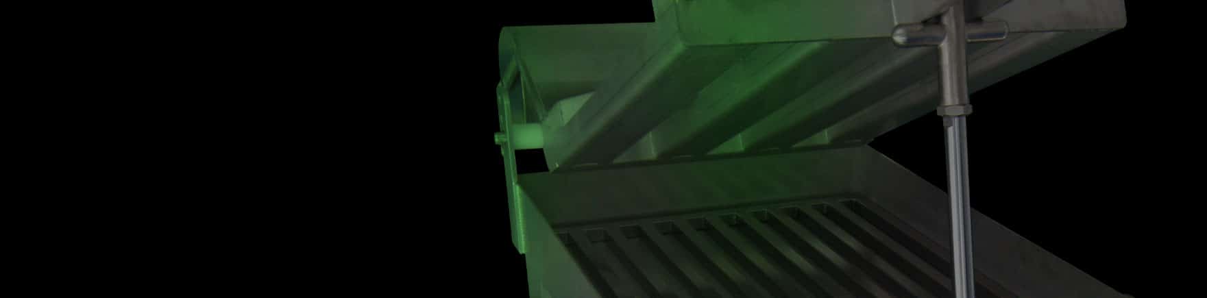 - Bac en tôle nervuré avec plateau de pressage en ciseau actionné par vérin pneumatique